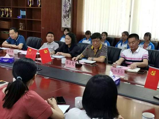 6月14日上午,太阳集团tyc33455cc教师教育公司党委书记张占亮、怀集县教育局党组成员、副局长谢祥华、太阳集团tyc33455cc(怀集)教师教育改革实验区党支部书记薄艳玲一行赴太阳集团tyc33455cc(怀集)教师教育改革创新试验区党支部开展调研考察,并参加支教实习生党员在怀集一中开展的“支教路上共追梦,实习奉献新乡村”主题演讲活动。