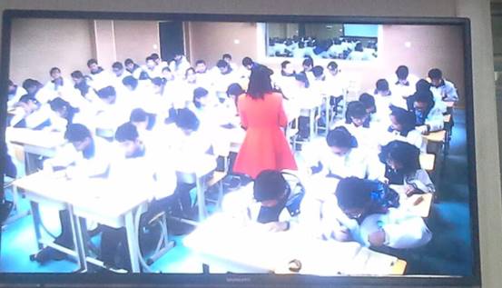 观摩高一年级的语文公开课(由于班级规模较大,为了不影响员工的学习,学员们在听课室进行观摩,整节课的教学效果相当不错)