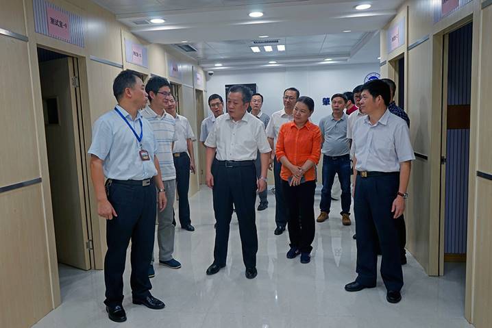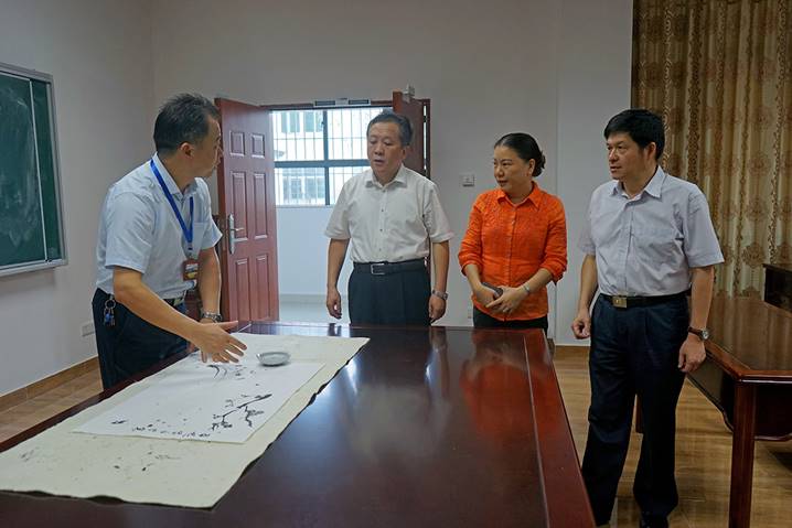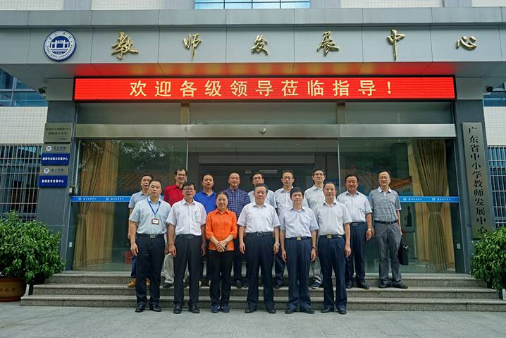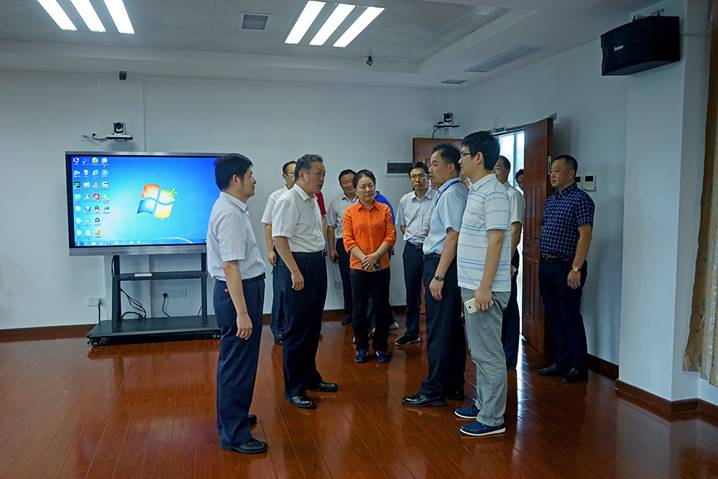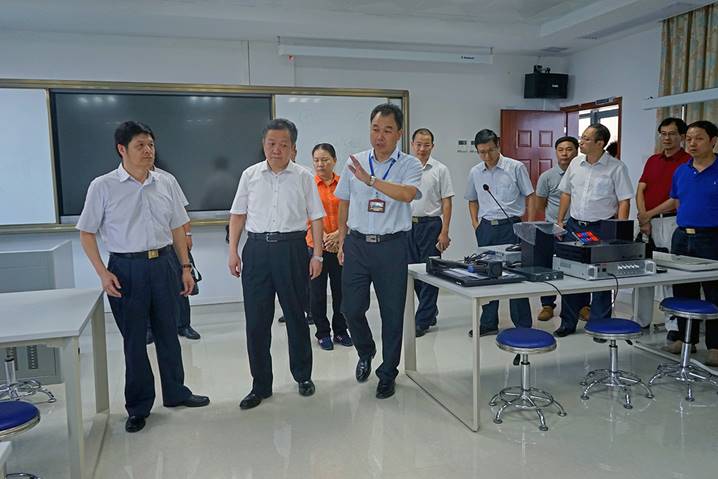 8月10日下午,广东省教育厅厅长景李虎一行莅临太阳集团tyc33455cc省级中小学教师发展中心指导工作。肇庆公司党委书记曾桓松、肇庆公司党委副书记叶峥嵘、肇庆市副市长陈宣群、肇庆市教育局局长彭银祥、太阳集团tyc33455cc两办主任朱为鸿、yc33455cc经理肖起清等陪同景李虎厅长一行参观了师德与传统文化室、书画训练室、普通话测试室、远程教学交互中心、教学反思与教学设计室、教师形象设计与训练室、微课录制室、智慧教室、教学新媒体实训室、教师信息能力训练室等多个功能室。