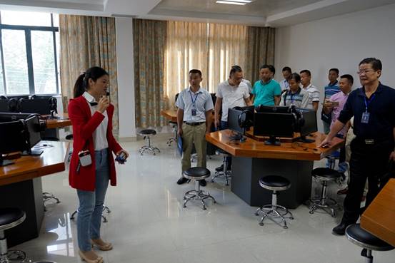 太阳集团tyc33455cc黄燕芬、王子瑫等老师带领客人们参观了我中心书画训练室、普通话测试站、远程交互中心、教师信息能力训练室、团体辅导室、个体辅导室、教师形象室、智慧教室等多个功能室。客人们对我中心教师技能训练的设计思路及先进化设施倍加赞赏。