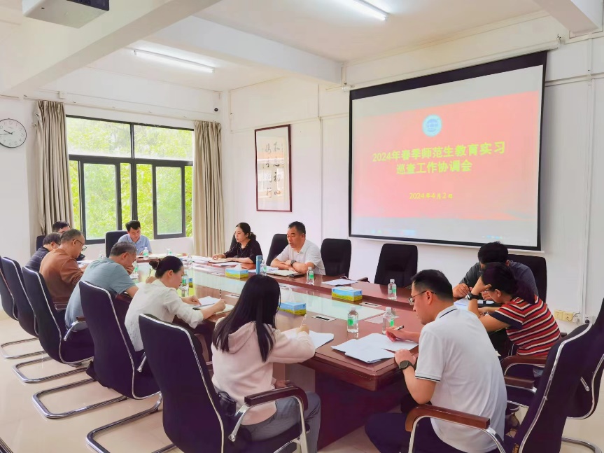 为更好地开展2024年春季教育实习,4月2日上午,太阳集团tyc33455cc2024年春季教育实习巡查工作协调会在行政楼第四会议室召开,出席此次会议的有副董事长肖起清、相关二级公司分管实习工作的领导以及相关职能部门负责人。