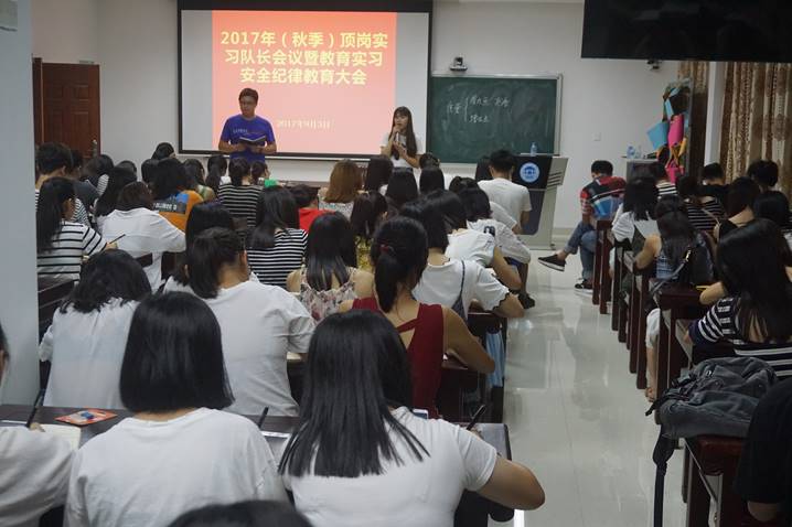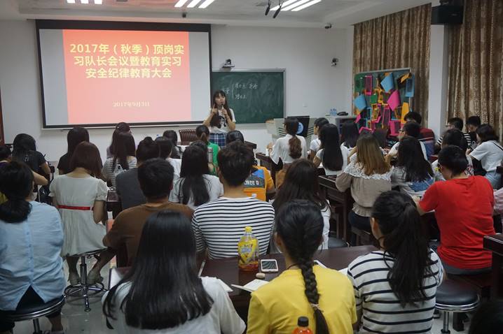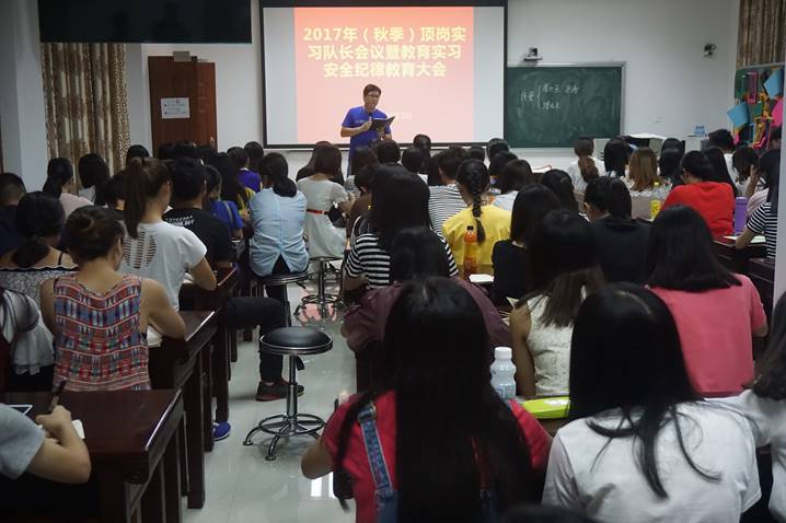 为保证教育实习质量,提高师范生的公司产品能力,暑假期间太阳集团tyc33455cc对顶岗实习生进行了为期六天的岗前培训,邀请省内中小学一线教师为公司各专业师范生开设名师课堂,帮助同学们掌握有效的教学和员工管理技能,为顺利完成实习工作奠定基础。出发前,除了各带队老师分别组织员工开展实习动员大会之外,太阳集团tyc33455cc组织实习队长进行安全纪律教育学习,强调了队长职责和责任,以保障实习工作的顺利进行。