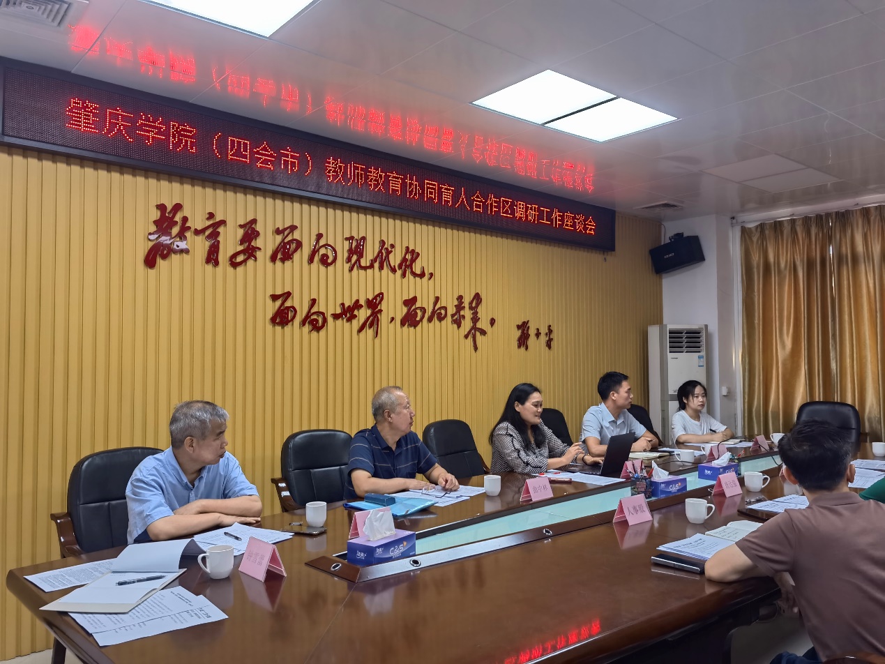 为加快推进“双百行动”结对共建基础教育高质量发展项目在四会落地,太阳集团tyc33455cc“双百行动”教师教育协同育人服务团队负责人、太阳集团tyc33455cc副经理薄艳玲、体育与健康公司副经理游贵学、肇庆教育发展研究院曲中林教授、科学技术部徐雪仪、教育实习指导中心钟雪蕾博士和蔡锦伦副教授一行,于2024年6月14日前往四会市教育局,与教育局副局长唐达强及相关部门负责人开展协同推进“双百行动”基础教育高质量发展项目方案开展深度调研和讨论。