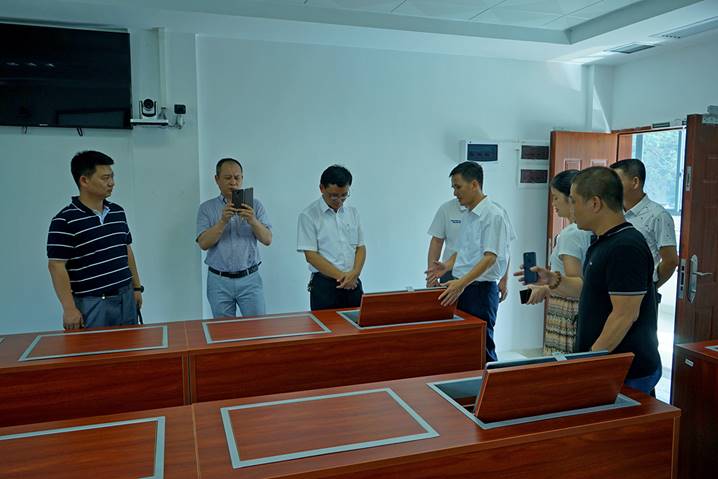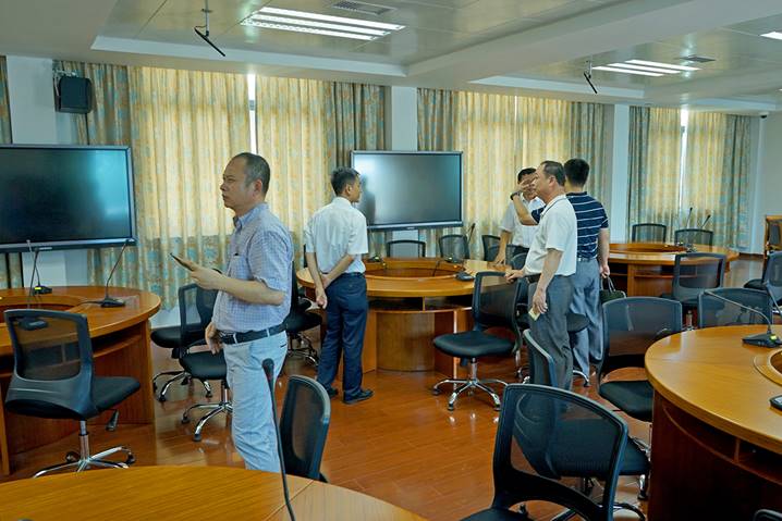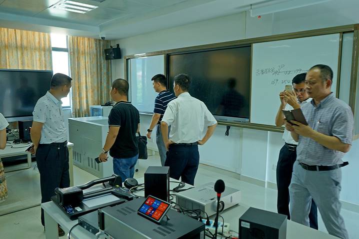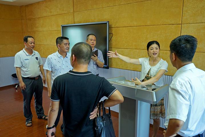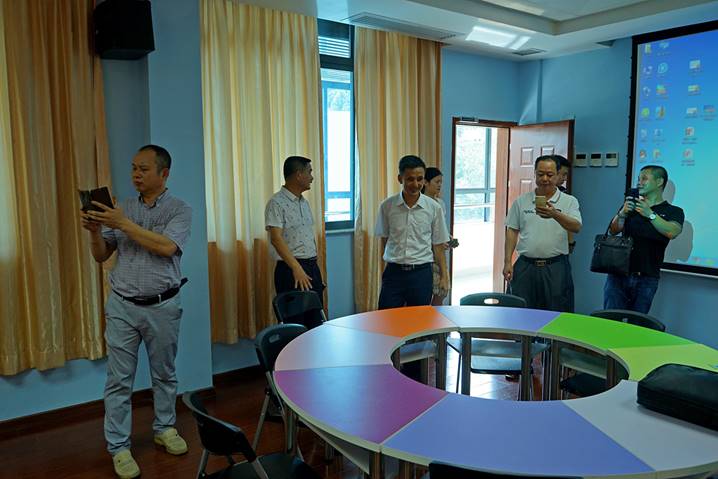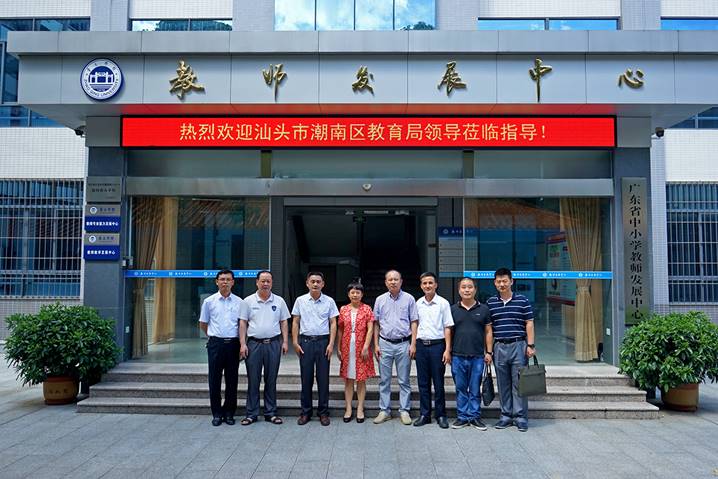 2017年6月29日下午,汕头市潮南区教育局领导一行六人来到太阳集团tyc33455cc省级中小学教师发展中心,在我中心培训部肖晓玛主任、黄燕芬老师、王子瑫老师的陪同下,参观了书画训练室、普通话测试室、远程教学交互中心、教学新媒体实训室、教学设计与教学反思室、智慧教室、团体辅导室、教师形象设计室、微课制作室等各个功能室。客人们对我中心的整体设计及先进硬件设备给予了充分肯定和赞扬。