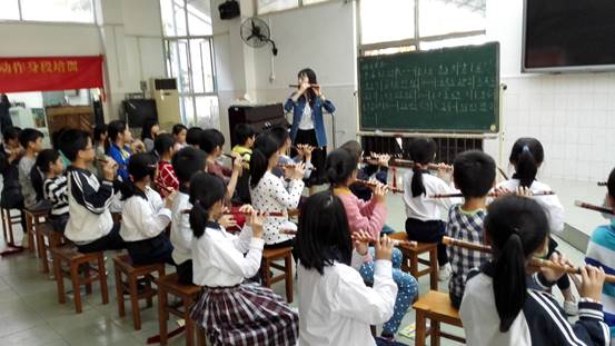 音乐科学员们在顺德区红棉小学观摩竹笛示范课