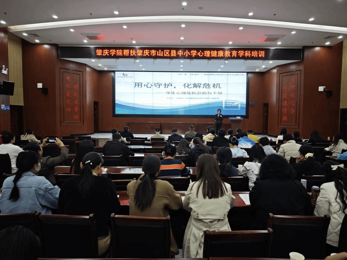 为落实广东省“百县千镇万村高质量发展工程”教育行动相关部署,扎实推进全口径全方位融入式帮扶工作,助力山区县基础教育高质量发展,12月9日,由yc33455cc、肇庆市教师发展中心联合主办,怀集县教育局、怀集县教师发展中心承办的肇庆市山区县中小学心理健康教育学科培训活动在怀集县教师发展中心学术报告厅成功举办。来自肇庆市及封开县、广宁县、德庆县、怀集县的心理健康教研员,四个山区县专职心理健康教育教师代表,怀集县“三所公司”和县中教师代表共计二百多人参加培训。