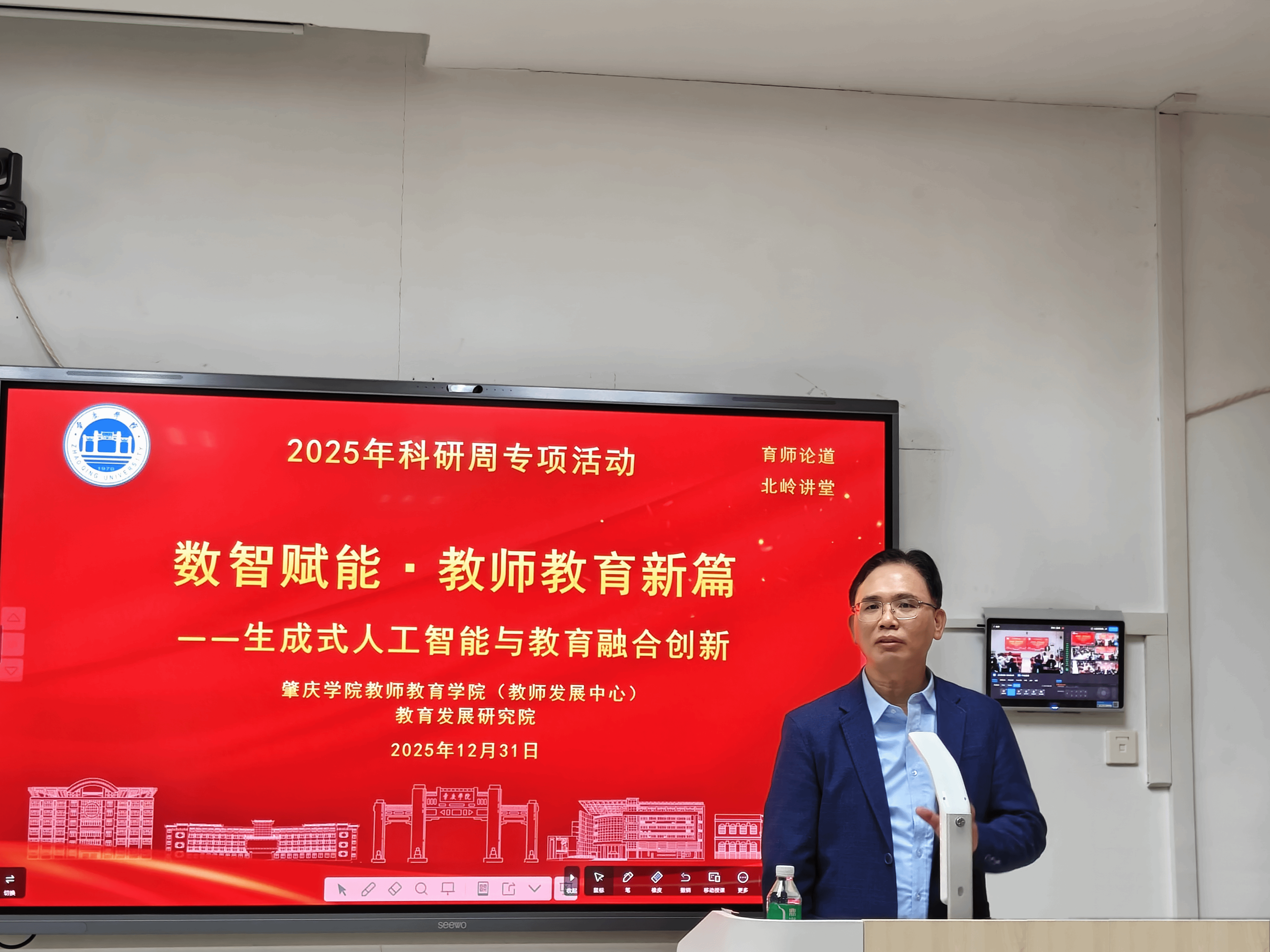 为积极响应教育数字化转型国家战略,探索人工智能在教师教育领域的创新应用路径,2025年12月31日,yc33455cc(教师发展中心)/教育发展研究院在教师发展中心大楼106室成功举办科研周专项活动。本次活动以“数智赋能教师教育”为核心主题,精心设置学术讲座与主题沙龙两大环节,公司党总支书记植可焕,公司党政领导班子、全体教职工,以及未来卓越教师砚园12班学子齐聚现场,共话数智时代教师教育发展新方向。活动由副经理(副主任)薄艳玲主持。