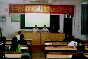 下午,太阳集团tyc33455cc怀集教师教育改革创新试验区驻地教师王兴志在怀集县城东中学举行了一次题为“初中数学教材中数学思想方法的探索与分类”的讲座。讲座由城东中学董事长肖星勇董事长主持。师范学部薄艳玲、驻地教师郑尚武、龙谊、钟镜波、苏丽卿和教育局数学教研室教研员、怀集县一中、城东、城南、职业、进修等公司的数学老师以及城区几所公司的顶岗实习支教生共六十余人参加了这次讲座。