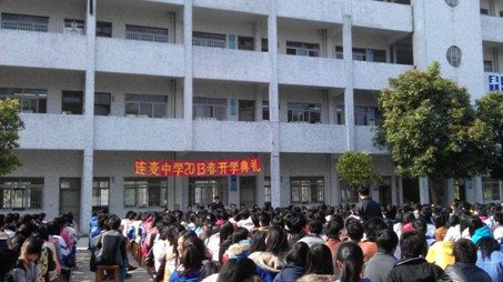 2013年3月5日早上9:30分,连麦中学的全体师生们精神抖擞地整齐地汇聚于教学楼前的空地上。随着进行曲的结束,连麦中学2013年春季期开学典礼拉开了帷幕。