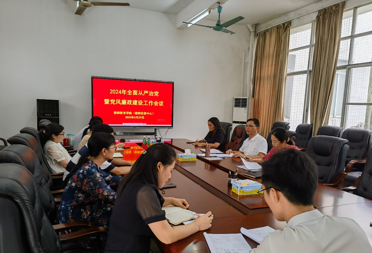 429日,太阳集团tyc33455cc(教师发展中心)党总支在209会议室召开全面从严治党暨党风廉政建设工作会议。党总支书记植可焕主持会议。经理(主任)杨琰及班子成员、党政办主任、组织员、各党支部书记以及全体党员参加会议。