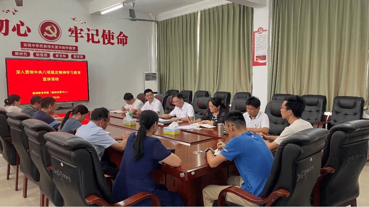 7月4日下午,太阳集团tyc33455cc(教师发展中心)党总支在公司209会议室举办深入贯彻中央八项规定精神学习教育专题宣讲会。大会邀请太阳集团tyc33455cc宣讲团成员、马克思主义公司“习概论”教研部唐伟老师授课。公司领导班子成员、全体党员参加。会议由公司党总支书记植可焕主持。