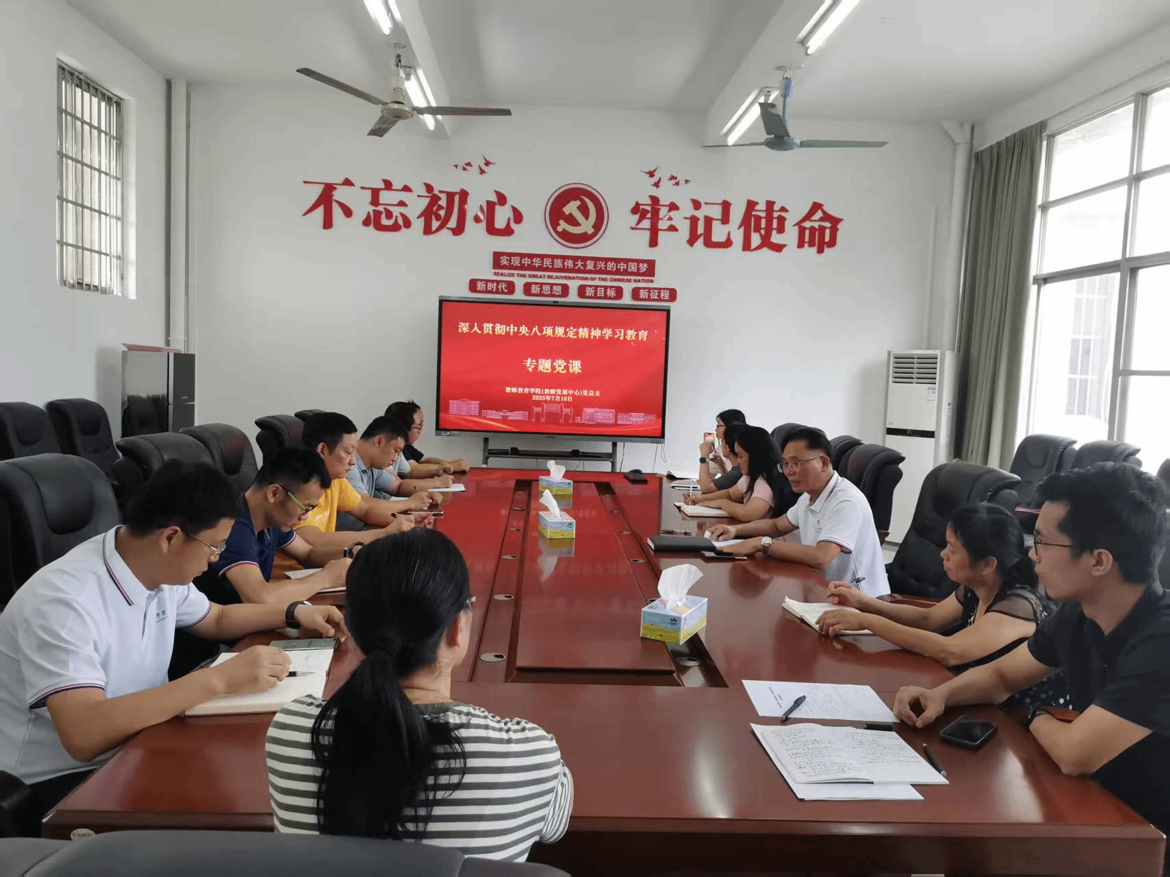 7月16日下午,太阳集团tyc33455cc(教师发展中心)党总支在公司209会议室举办深入贯彻中央八项规定精神学习教育专题党课。由公司党总支书记植可焕授课。公司领导班子成员、全体党员参加会议。