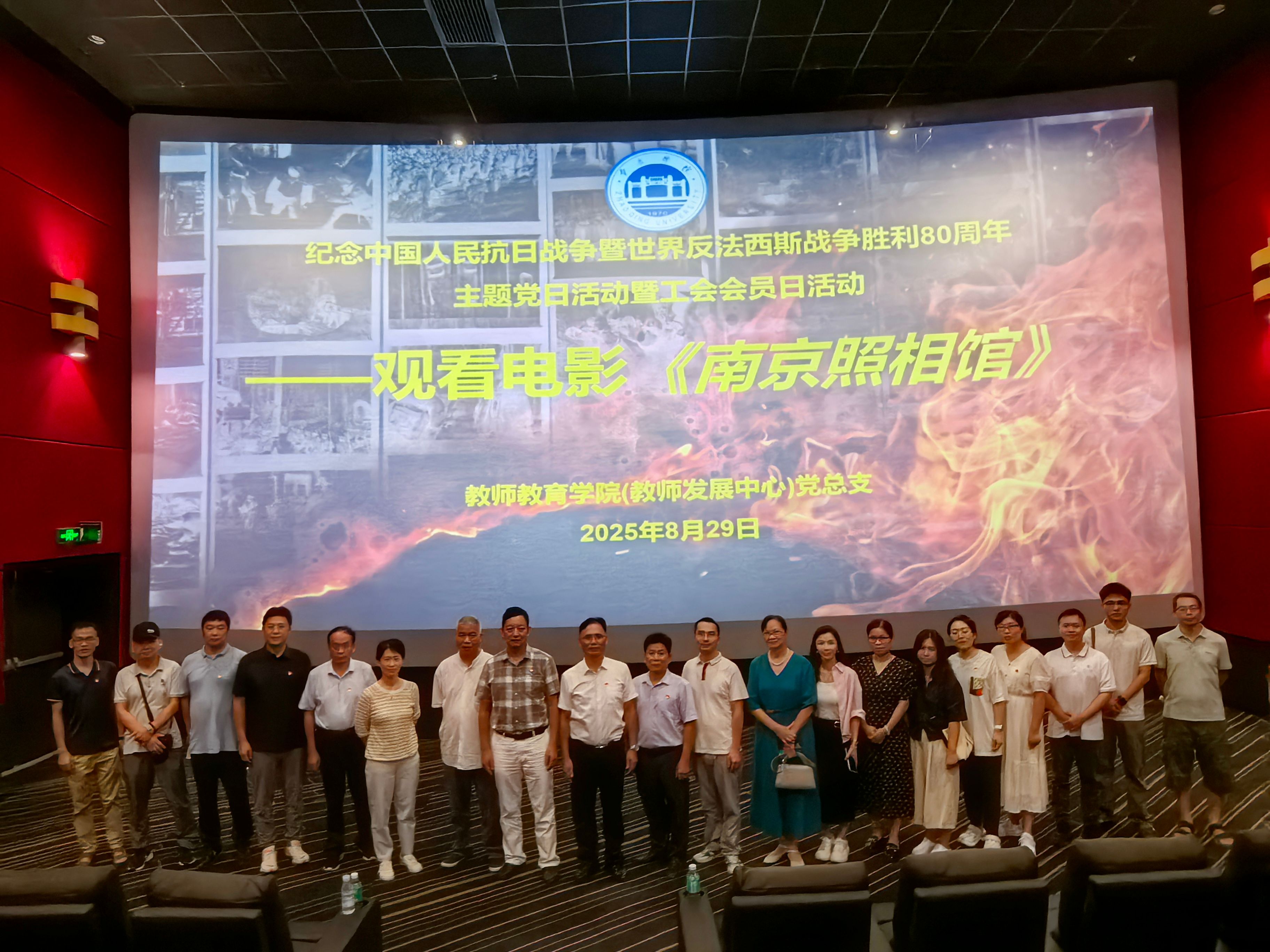 8月29日下午,太阳集团tyc33455cc(教师发展中心)党总支组织开展了“纪念中国人民抗日战争暨世界反法西斯战争胜利80周年”主题党日活动暨工会会员日活动。本次活动以爱国主义教育为核心,通过集中观看爱国主题电影《南京照相馆》,引导教职工回顾历史、缅怀先烈,进一步激发爱国情怀与责任担当。