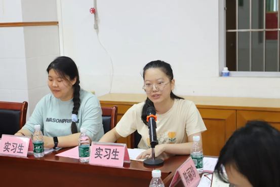 第一位实习生,首先谈到了她在实习期间的学习经历。她表示,从一开始的彷徨不安到现在的游刃有余都离不开指导老师对她的指导与帮助。在这段宝贵的实习经历中,不仅提升了自己的教学技能和管理能力,也让自己对教育事业有了更深刻地理解和热爱。