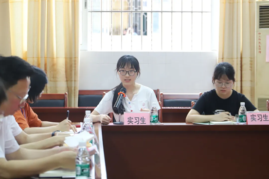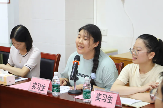 在座谈会中,4位实习生分别对在实习期间的学习、教学、班级管理等方面做了发言。