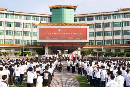 9月3日,2024年秋季师范生教育实习出征仪式在国砚广场举行。公司党委书记谢冠华出席,副董事长肖起清主持,相关职能单位负责人和各二级公司经理、分管实习工作的副经理、教育实习指导教师和员工代表参加。