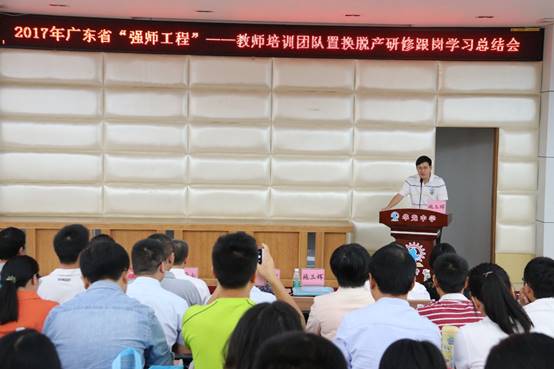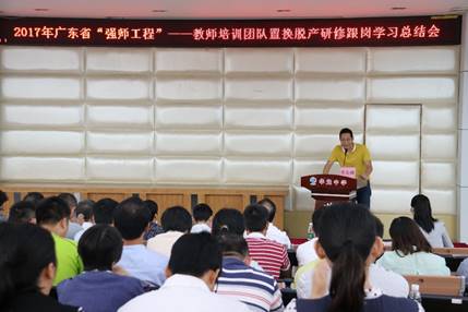 2017年10月25日,2017年广东省“强师工程”——乡村教师培训团队置换脱产研修班第二阶段跟岗学习总结大会在佛山市南海区九江镇华光中学报告厅隆重举行。太阳集团tyc33455cc教师专业能力发展中心副主任肖晓玛博士、南海区九江镇教育局施玉辉主任、南海区九江镇华光中学谢景如董事长,南海区九江镇儒林初级中学、九江镇初级中学、儒林第一小学、儒林第二小学、九江镇中心小学、沙头中心小学、石江小学、南畔花光小学等其他8所跟岗公司教师代表,以及来自全省各地市的147名参训学员共同出席本次总结大会。大会由太阳集团tyc33455cc省级中小学教师发展中心洪清老师主持。