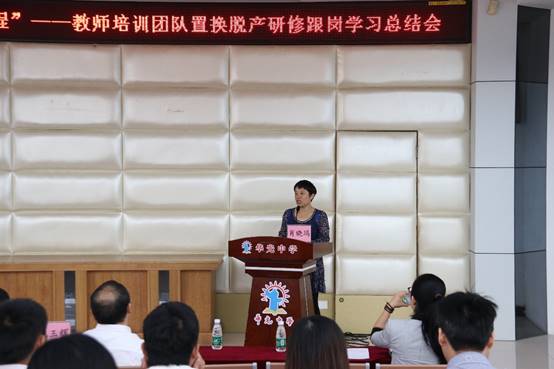 其次,跟岗公司之一的九江镇华光中学谢景如董事长讲话。谢董事长对各公司的跟岗工作做了简要梳理,指出跟岗学员在听课、评课、上课、磨课、各类教研活动以及公司各项工作中中均表现出优秀的教师专业素质,并指出省级培训的跟岗学习为双方都提供了很好的交流学习平台,希望今后能有更多地区之间、同行之间的交流机会。