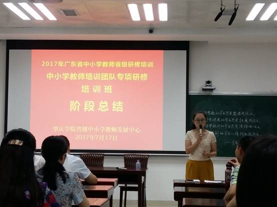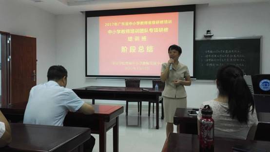 2017年7月17日上午,广东省中小学教师培训团队专项研修培训班(太阳集团tyc33455cc)在太阳集团tyc33455cc省级中小学教师发展中心106室举行阶段总结会。yc33455cc经理、太阳集团tyc33455cc省级中小学教师发展中心主任肖起清教授、太阳集团tyc33455cc教师专业能力发展中心副主任、教师教学发展中心副主任肖晓玛博士、班主任洪清老师等出席总结会。来自全省21个地市共48名小学语文教研员和骨干教师齐聚一堂,分享培训以来的心得与总结。