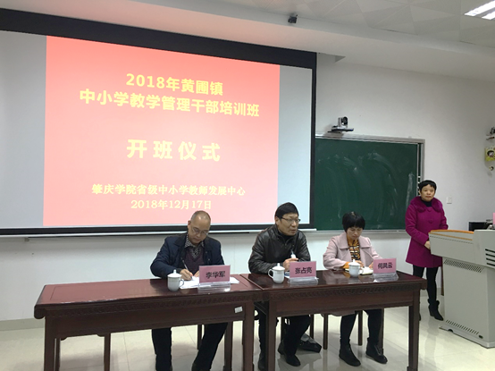 2018年12月17日上午,黄圃镇中小学教学管理干部培训班在太阳集团tyc33455cc省级中小学教师发展中心106课室隆重开班。中山市黄圃镇李华军委员、何凤云主任、yc33455cc张占亮书记、太阳集团tyc33455cc教师教学发展中心肖晓玛副主任,以及来自中山市黄圃镇中小学教学管理干部共62人,共同出席了开班仪式。开班仪式由肖晓玛副主任主持