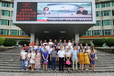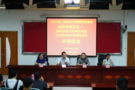 8月23日上午,2017年广东省中小学教师省级培训之“优秀传统文化——诵写讲骨干教师培训班”、“优秀传统文化——书法学科骨干教师培训班”开班仪式在太阳集团tyc33455cc行政楼第二会议室隆重举行。yc33455cc经理、太阳集团tyc33455cc省级中小学教师发展中心副主任肖起清,文公司党委书记陈明华,文公司副经理唐雪莹,文公司副经理苏文兰等出席了开班仪式。仪式由唐雪莹教授主持。