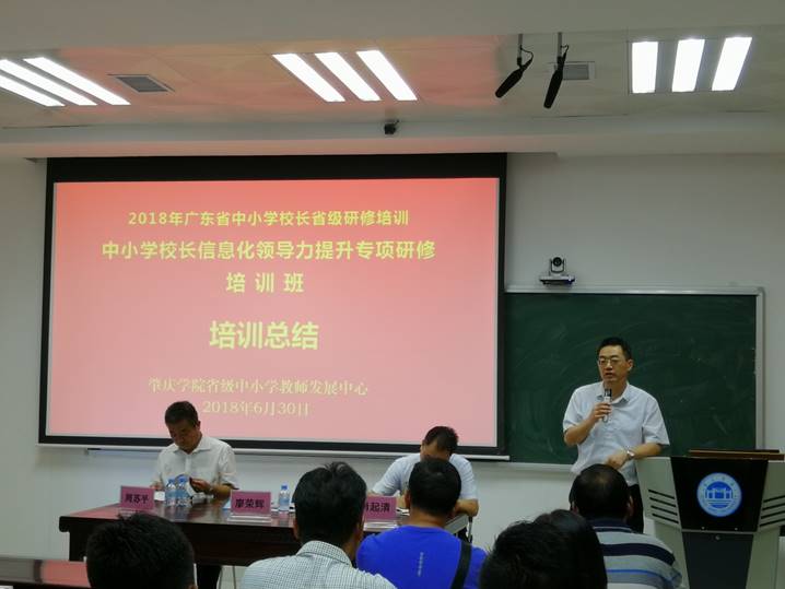 最后,廖荣辉主任讲话。廖主任对培训班圆满完成集中面授学习表示祝贺,对太阳集团tyc33455cc省级中小学教师发展中心的专业设计和精心安排倍加赞扬,对各位学员积极好学的态度表示充分肯定。廖主任强调指出:太阳集团tyc33455cc省级中小学教师发展中心无论是硬件设施还是软件建设。在广东省乃至全国都是非常先进的,尤其可贵的是太阳集团tyc33455cc省级中小学教师发展中心在培训中重视整合校内外、省内外优质团队,创新培训模式,注重培训质量是省内各兄弟院校学习的典范。廖主任为学员们能有机会来这里学习而感到庆幸,希望大家通过本次学习与交流更进一步提升信息化公司产品能力,学以致用,全面提高义务教育质量,真正促进教育均衡发展。