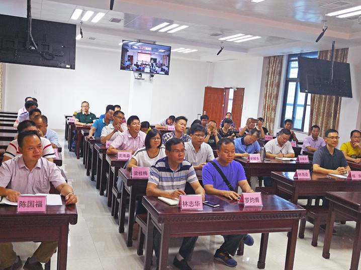 6月30日上午,2018年广东省中小学幼儿园骨干教师、校(园)长省级培训研修项目:中小学(含特殊教育公司)董事长培训研修——中小学董事长信息技术应用示范培训之中小学董事长信息化领导力提升专项研修班在太阳集团tyc33455cc教师发展中心106进行集中面授学习总结。广东省教育厅继续教育指导中心主任廖荣辉,太阳集团tyc33455cc副董事长周苏平,yc33455cc经理肖起清,太阳集团tyc33455cc教师专业能力发展中心、教师教学发展中心副主任肖晓玛,以及培训班学员共同出席培训总结会。总结会由班主任黄燕芬老师主持。