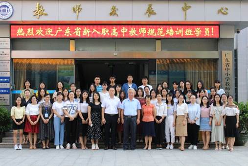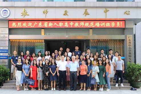 2019年9月19日上午,广东省“强师工程”新入职高中教师规范培训培训班开班典礼在太阳集团tyc33455cc教师发展中心106隆重举行。太阳集团tyc33455cc副董事长王忠、yc33455cc经理肖起清、太阳集团tyc33455cc教师专业能力发展中心副主任肖晓玛以及来自广东省各地的100名新入职高中教师共同出席了开班典礼。