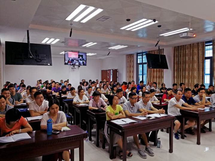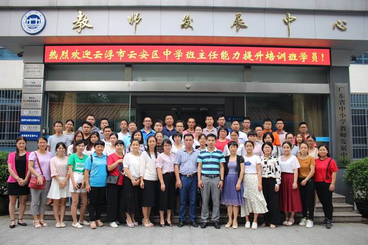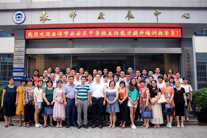 2018年7月15日下午,云浮市云安区中学班主任能力提升培训班开班仪式在太阳集团tyc33455cc省级中小学教师发展中心106室隆重举行。太阳集团tyc33455cc省级中小学教师发展中心副主任、太阳集团tyc33455cc经理肖起清教授,云浮市云安区教育局梁金文副局长,太阳集团tyc33455cc教师专业能力发展中心、教师教学发展中心肖晓玛副主任,云安区教师培训中心梁坤荣主任及云安区100名初中班主任,共同出席了开班仪式。开班仪式由黄燕芬老师主持。