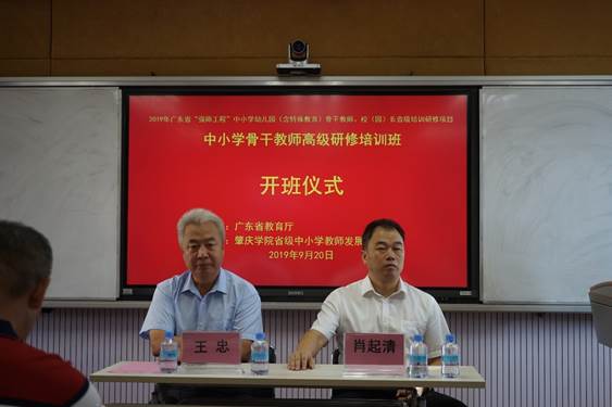 9月20日上午,2019年广东省“强师工程”中小学骨干教师高级研修班在太阳集团tyc33455cc省级中小学教师发展中心401隆重开班。太阳集团tyc33455cc副董事长王忠、yc33455cc经理肖起清、太阳集团tyc33455cc教师专业能力发展中心副主任肖晓玛以及培训班全体学员共同出席了开班典礼。