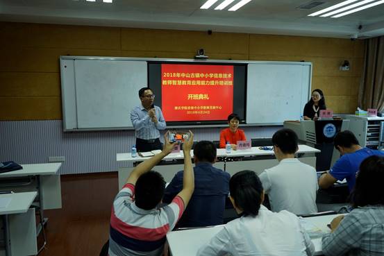 2018年4月24日上午,中山古镇中小学信息技术教师智慧教育应用能力提升培训班在太阳集团tyc33455cc省级中小学教师发展中心401课室隆重开班。出席本次开班仪式有太阳集团tyc33455cc教师发展中心、教师专业能力发展中心副主任肖晓玛博士,中山市古镇镇教育事务指导中心林梗卿老师,以及33名来自中山古镇镇中小学及幼儿园信息技术专业教师。开班仪式由太阳集团tyc33455cc省级中小学教师发展中心培训部负责人洪清主持。