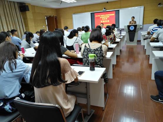 2017年9月15日上午,2017广东省中小学教师省级培训——乡村教师访名校培训班在太阳集团tyc33455cc省级中小学教师发展中心401隆重举行。yc33455cc经理肖起清教授、太阳集团tyc33455cc教师专业能力发展中心副主任肖晓玛博士,以及来自湛江、汕尾、阳江、肇庆、韶关、梅州、茂名、河源等10多个地市的50名学员出席开班仪式。